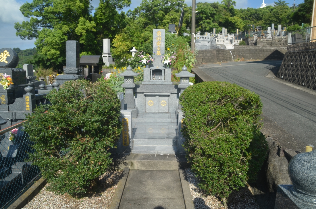 お墓の掃除と生花や造花を現地でアレンジし、お線香をあげてお参